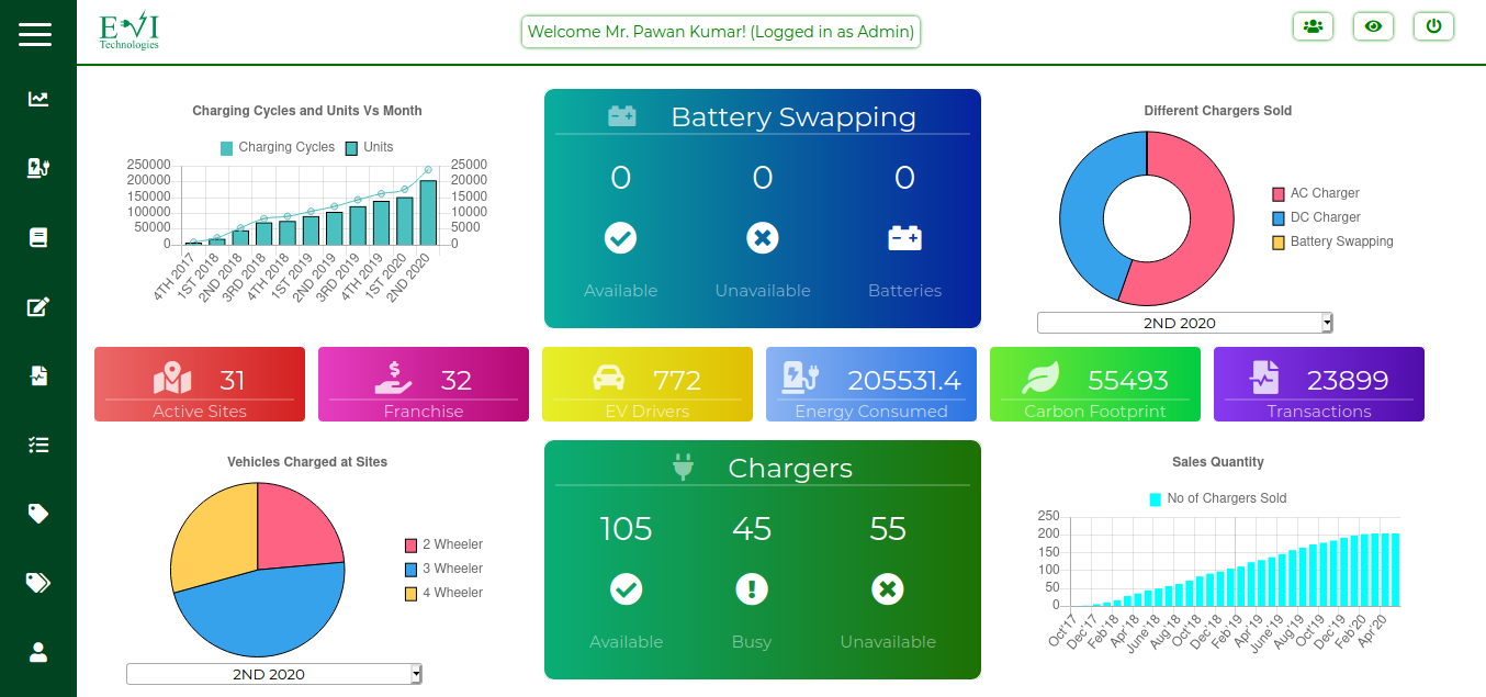 EVIT provides both EV AC (slow) and DC (fast) charger which works through the user authentication process via a mobile app on the user/operator side.